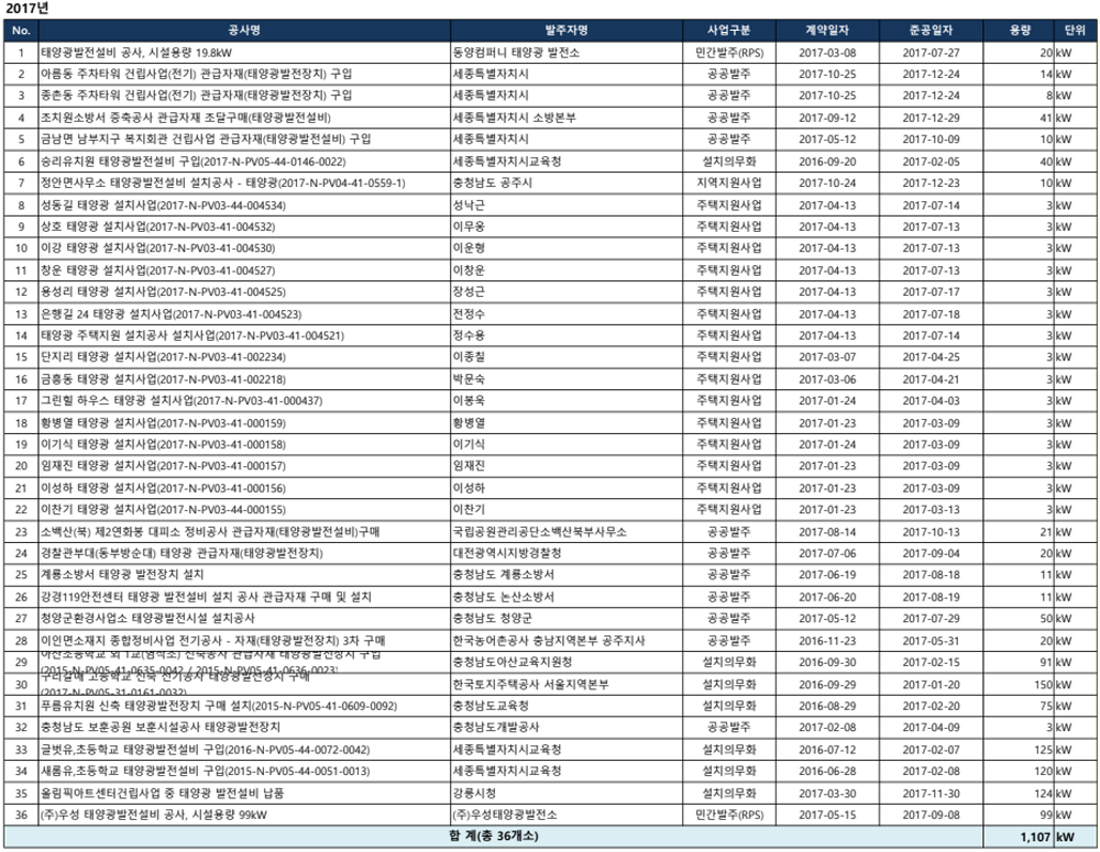 [2017] 36개소 1.1MW 매출액 37억원